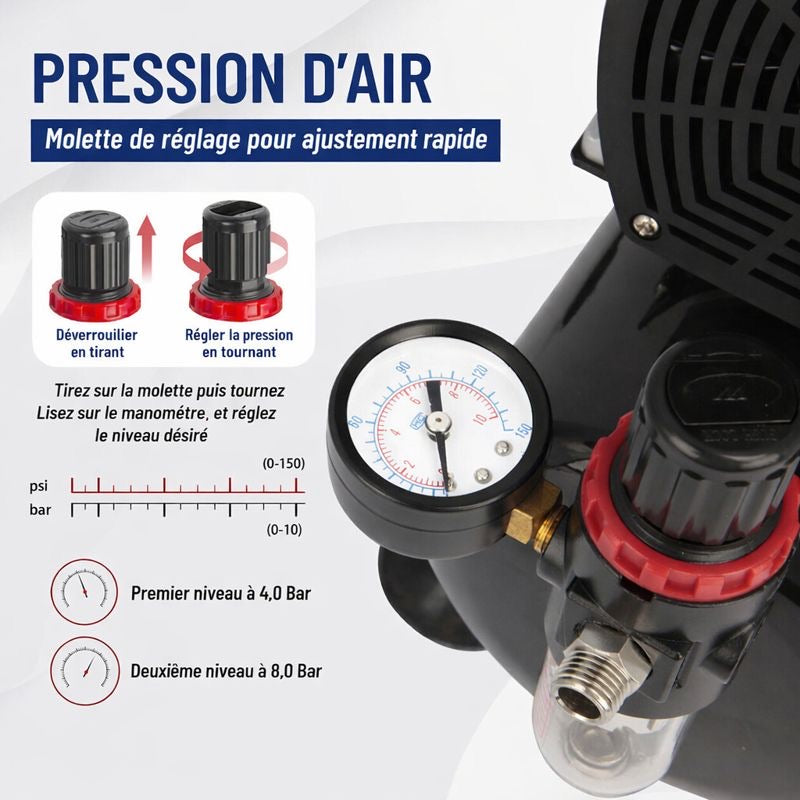 - Purger l'air de votre compresseur à piston pour qu'il ne soit plus sous pression et enlever le raccord du tuyau d'air.